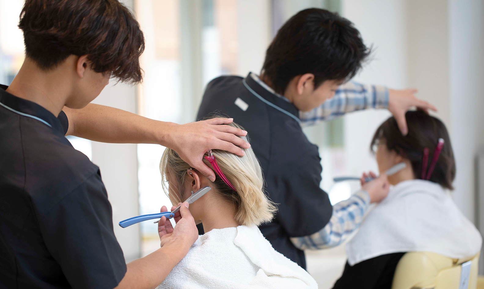 バリカンを使った刈り上げやツーブロックなど整髪技術を学びます。