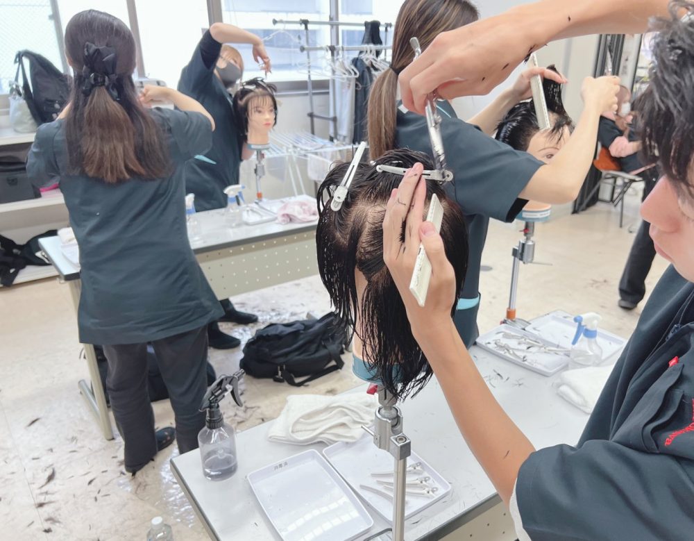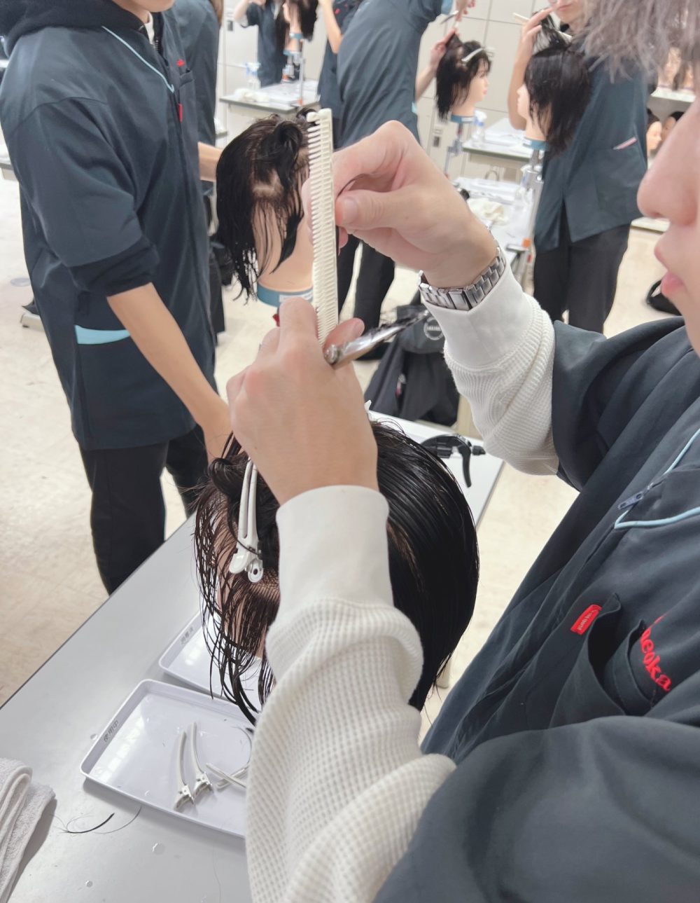 2年生は国家試験対策のために課題であるカットの練習をしています。