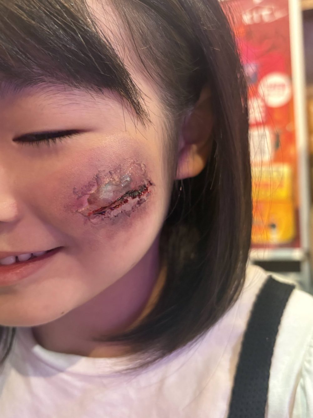 傷メイクもリアル過ぎて、とても好評でした!(痛々しい…😬)