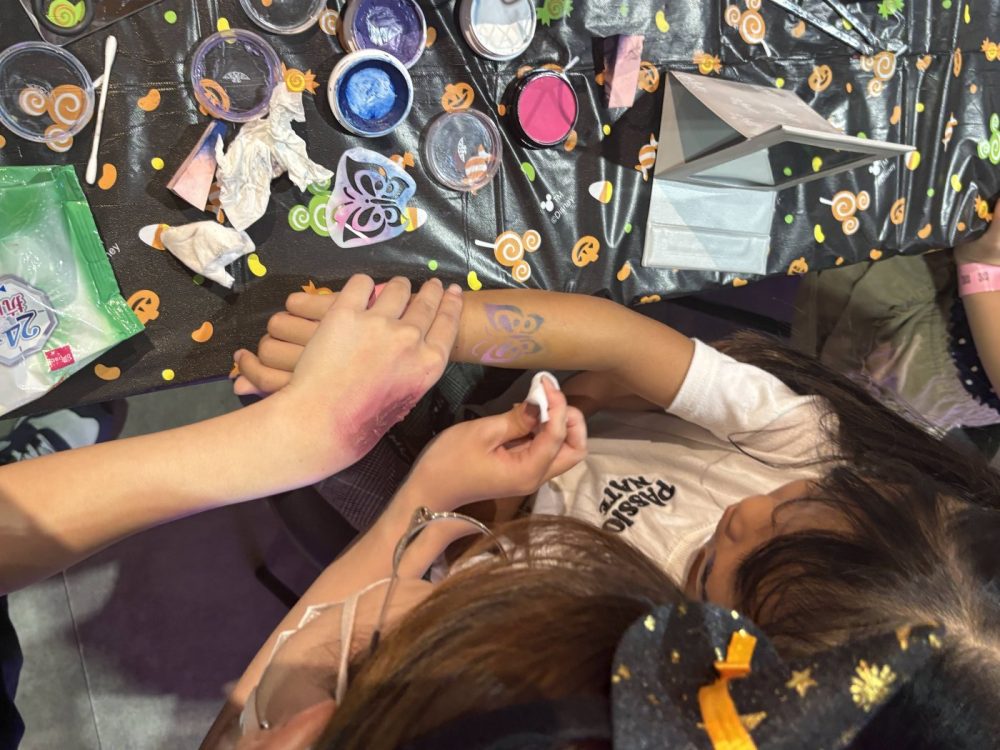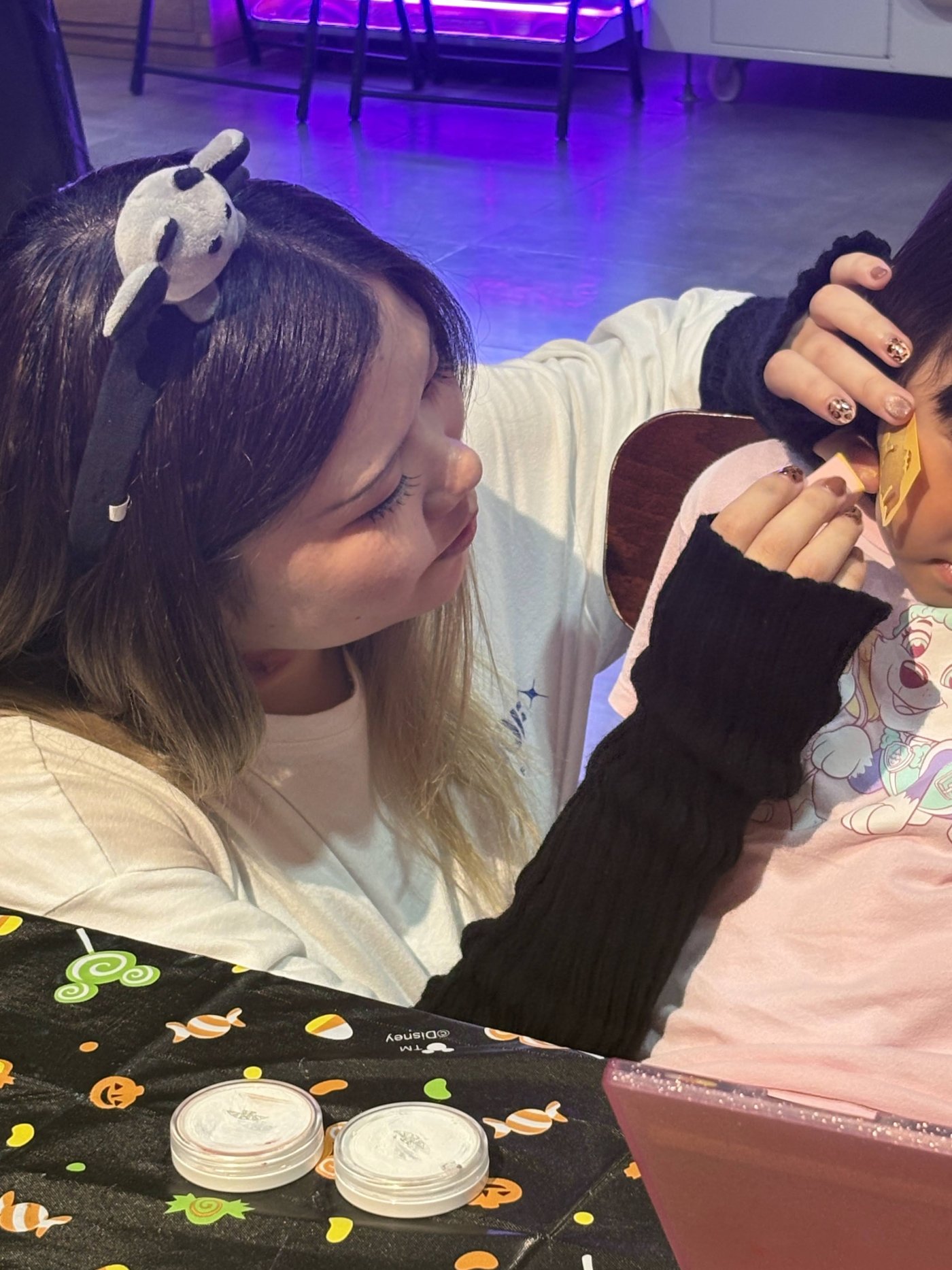 お客様のご要望に合わせて直接肌にイラストを描いたり、専用のシート型を当ててペイントをします。