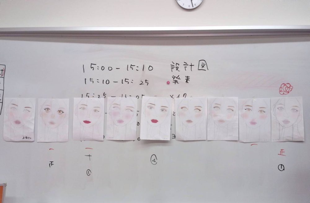 1年メイクの授業の中で、自分の骨格・顔型を知り