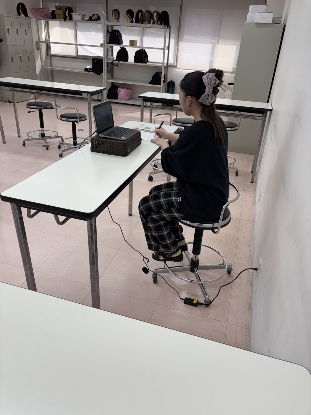 今日は、就職試験を控えた学生が副校長先生による、最終チェックを行いました。